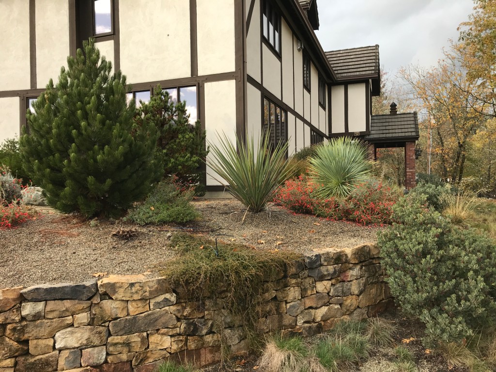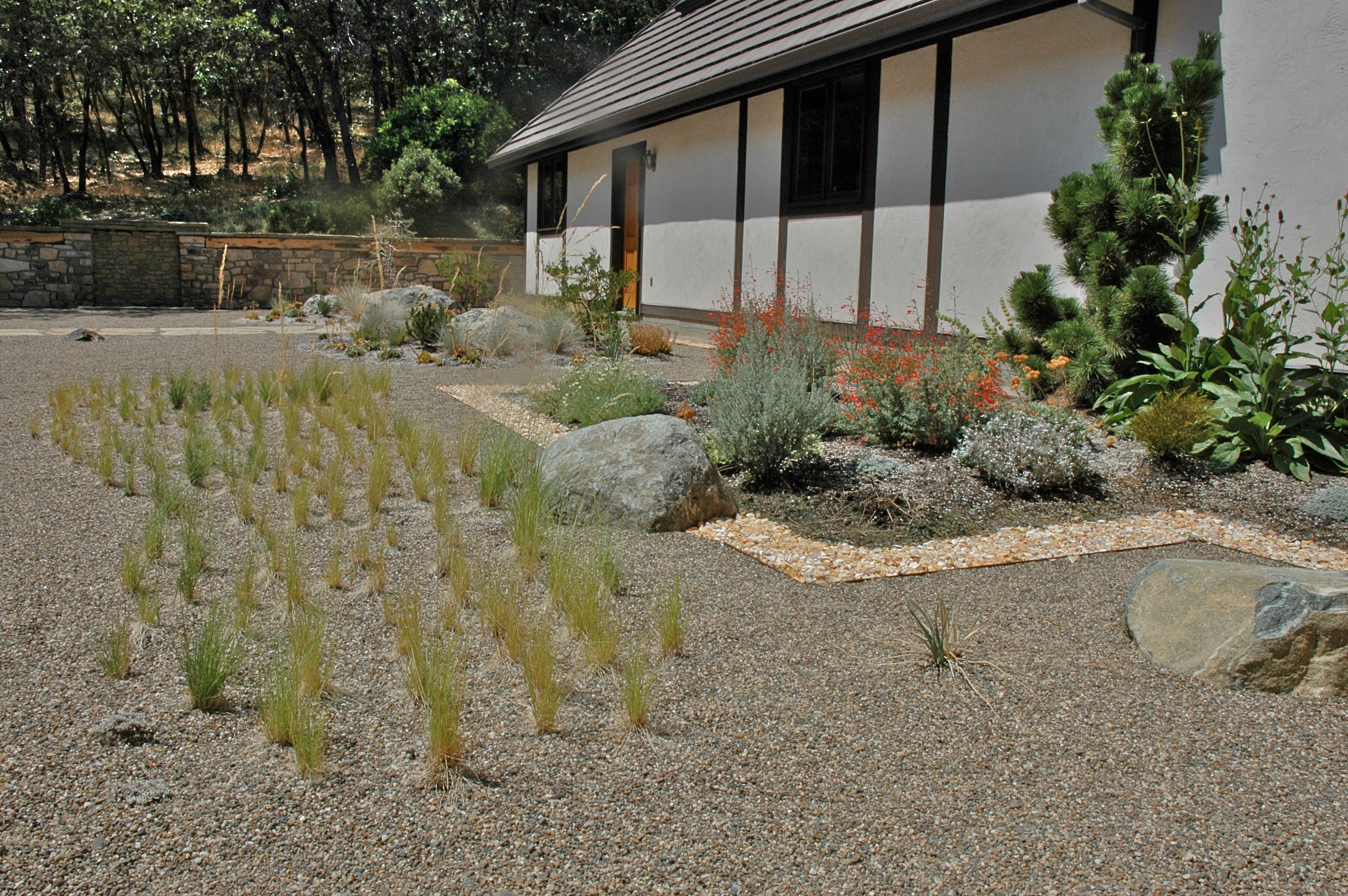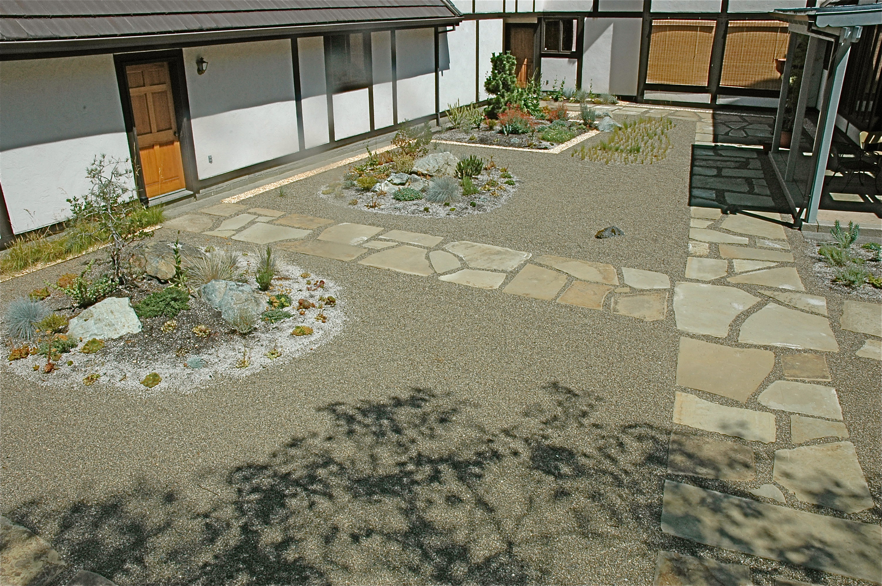 The design concept was a marriage of Japanese dry gardens and Southern Oregon Regionalism. Efforts were made to bring rugged native elements into the carefully arranged courtyard.