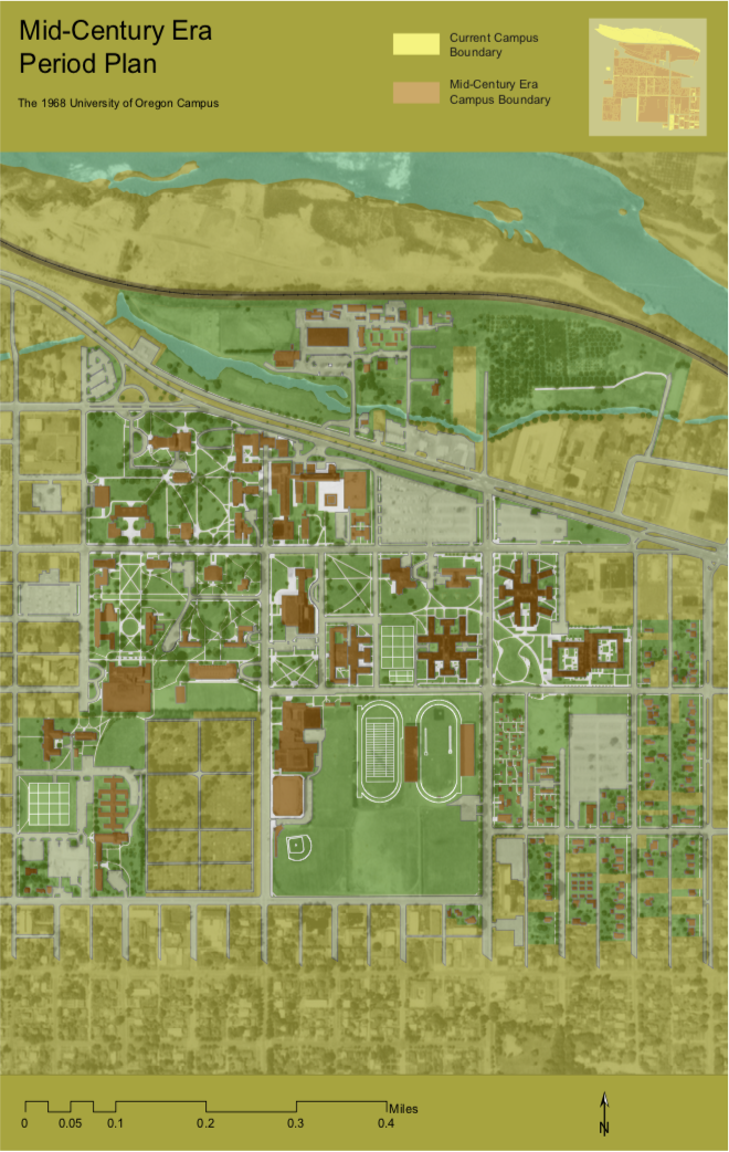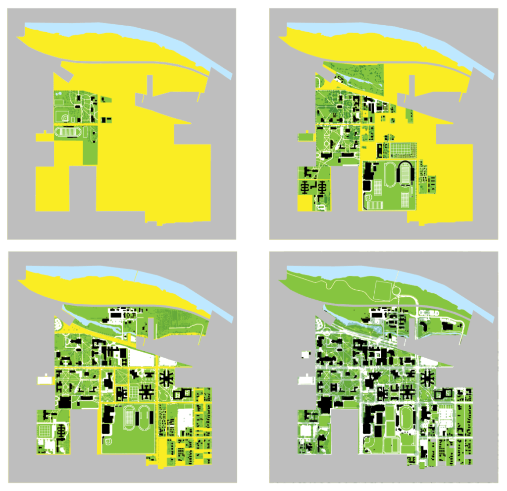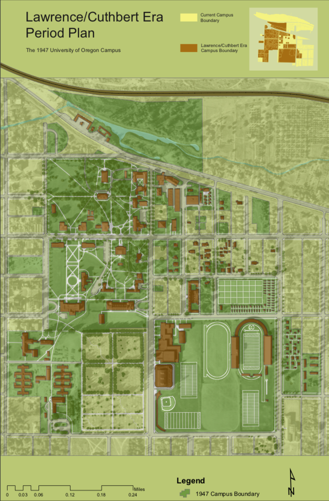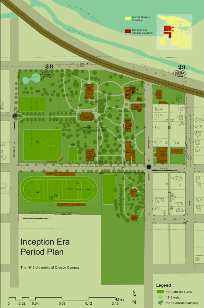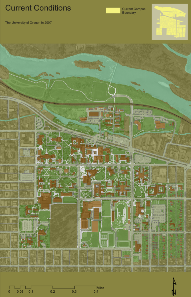 Tracking the expansion of the University of Oregon Campus through 4 time periods